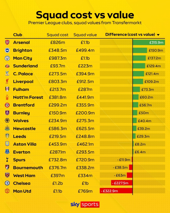 布莱顿:成本3.485亿,价值4.994亿,盈余+1.509亿